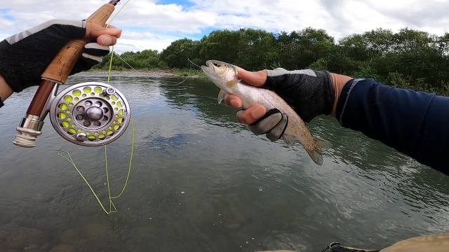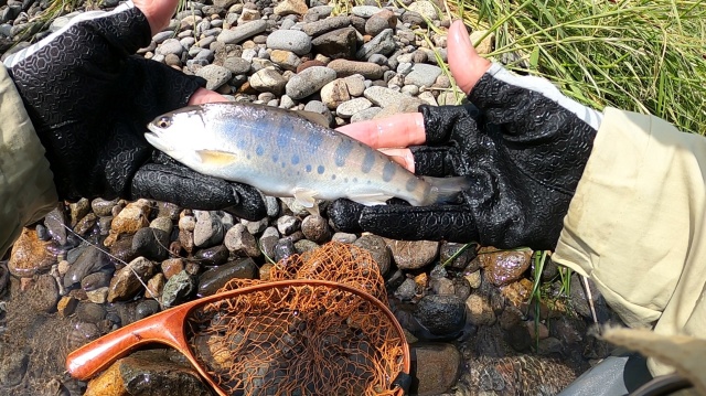 雨も続いたので遡上が期待出来ると意気込んで入った。前回より川の水は幾分増えており条件は良さそうだった。しかしどのポイントも全く当たりが無く煩雑にフライを交換しても反応は無い。先行者が釣った後なのかも知れない。それでも粘って数匹釣る事が出来た。